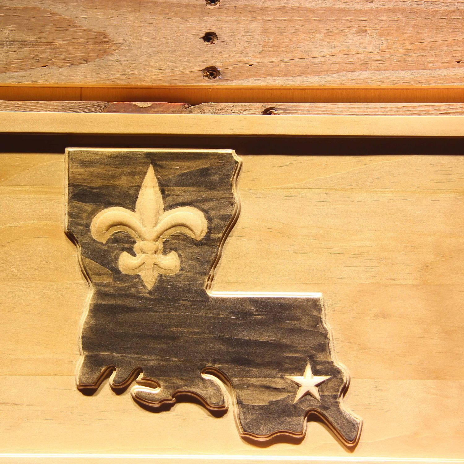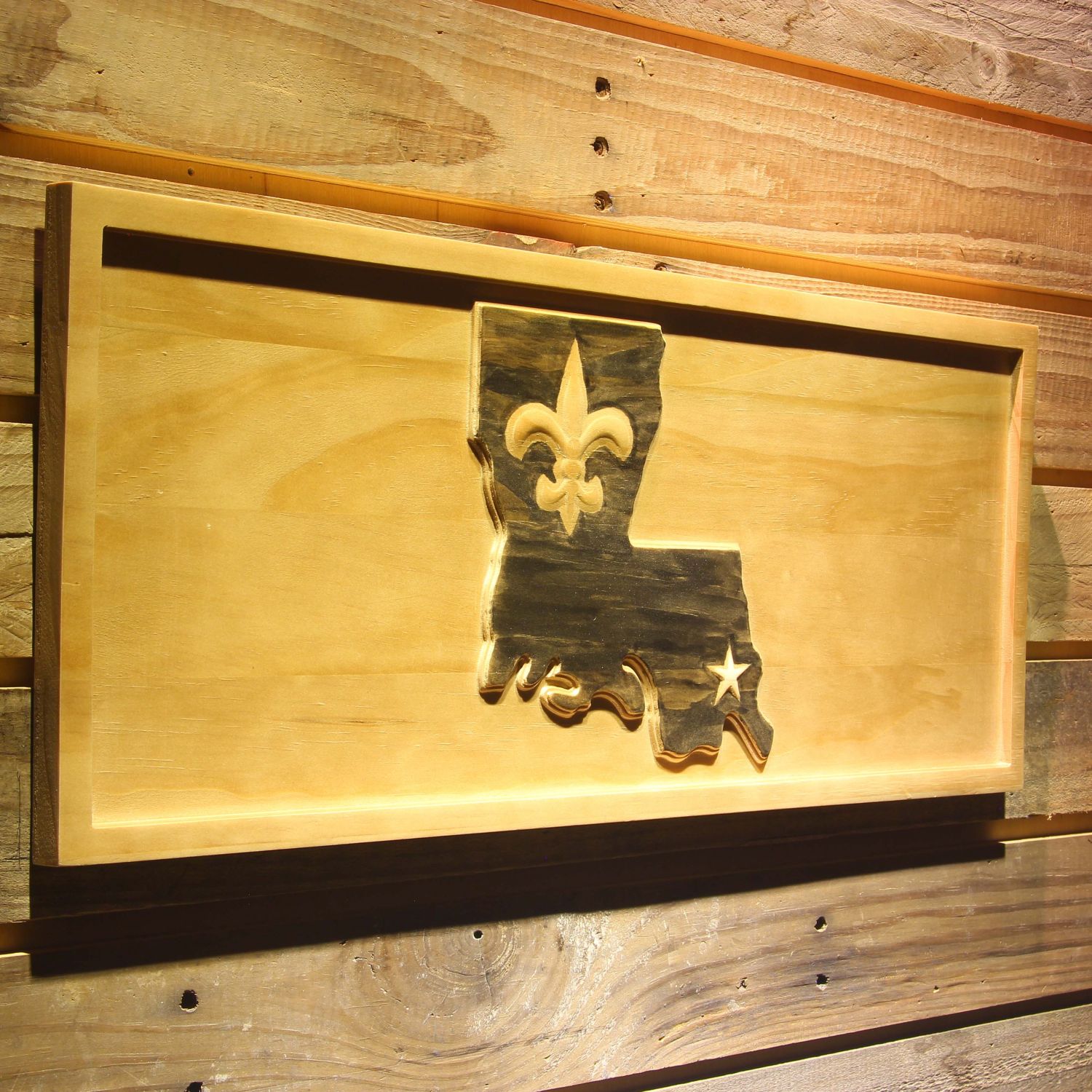 - Production method: 3D lettering and images made using a two tone stain finish